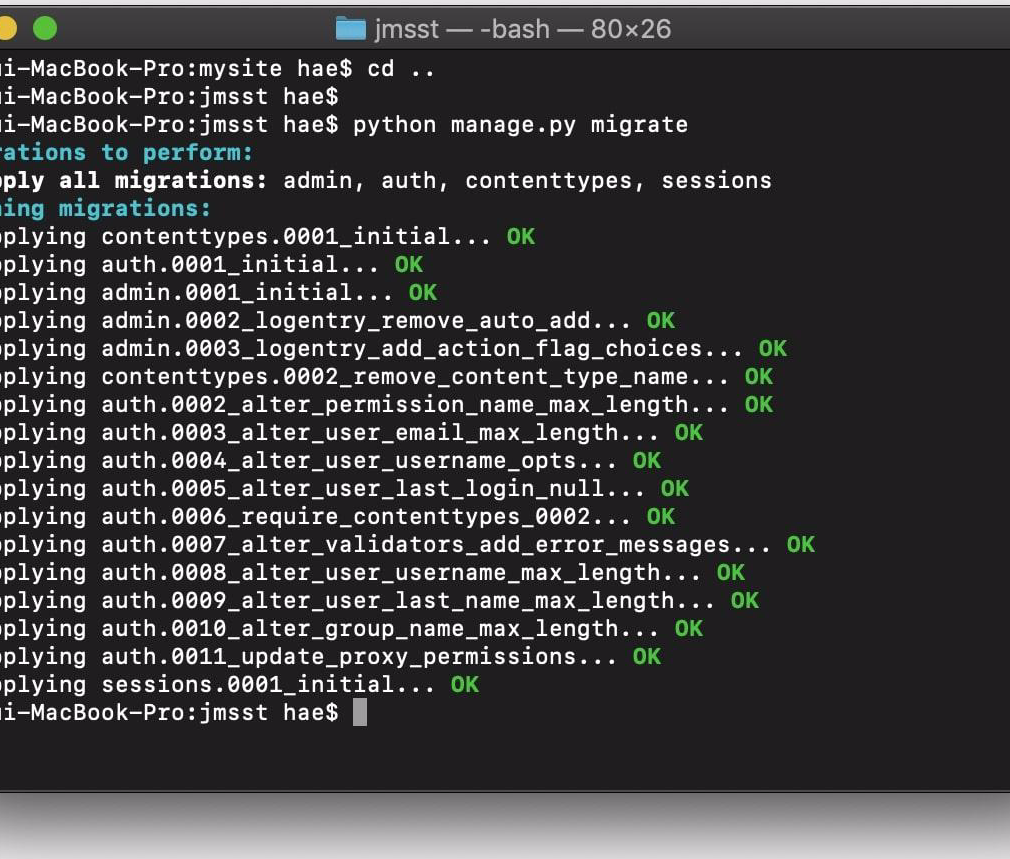 migrate는 변경사항등을 DB에 반영해주는 명령입니다.