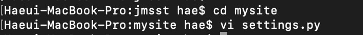 이름이 같아 헷갈릴수 있기때문에 저는 상위 mysite 디렉토리의 이름을 jmsst로 수정하겠습니다