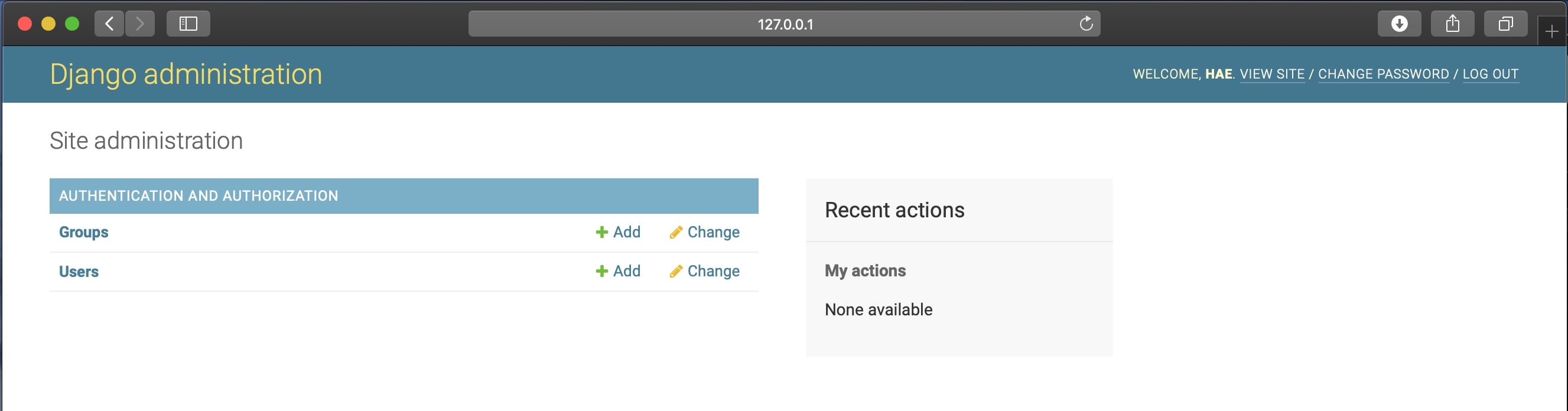 - python mange.py // 현재까지의 작업을개발 개발용 웹 서버로 확인